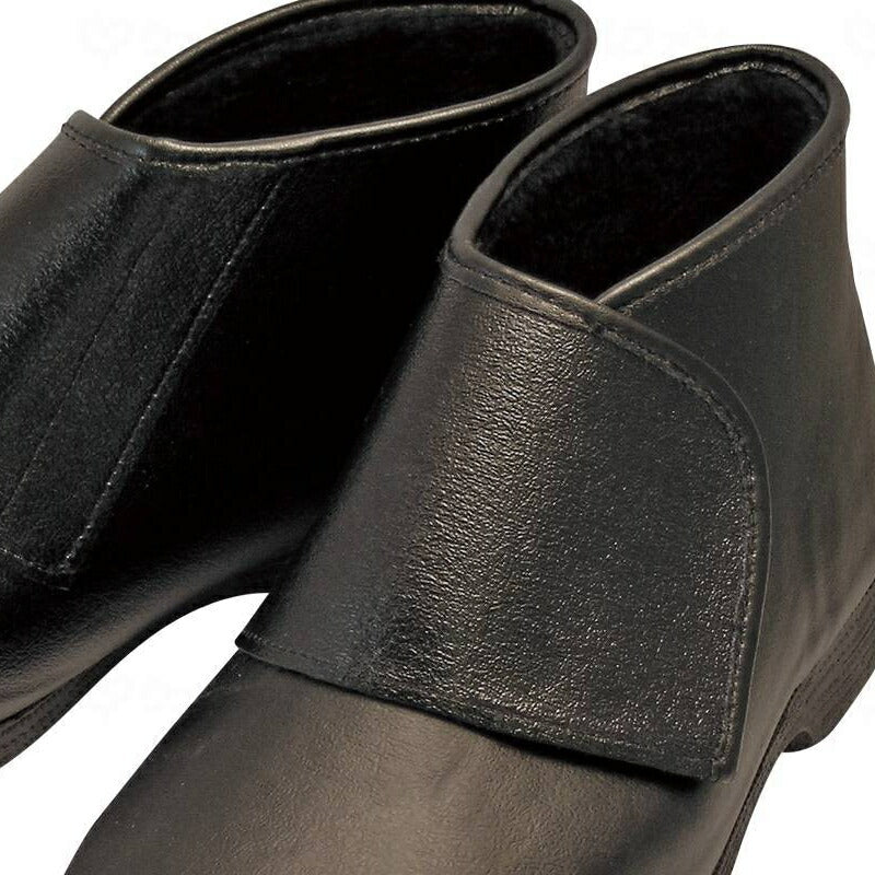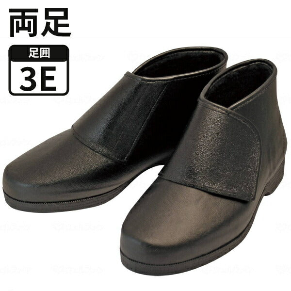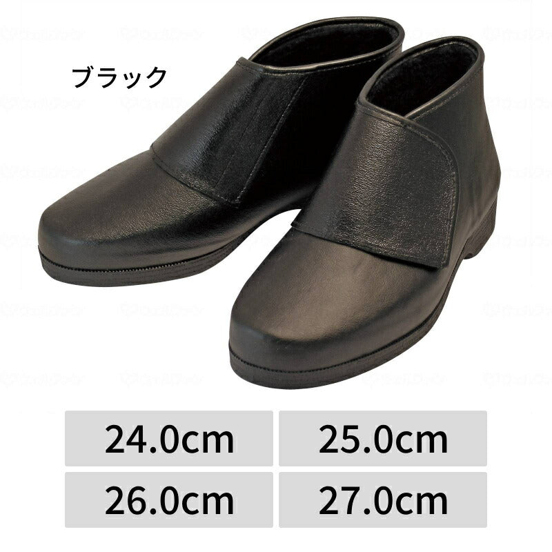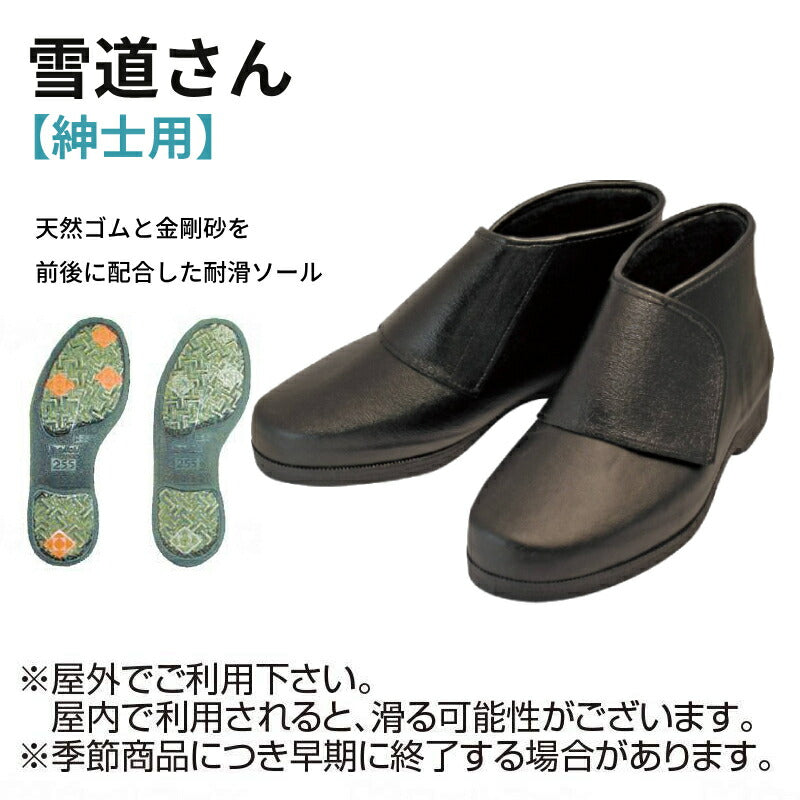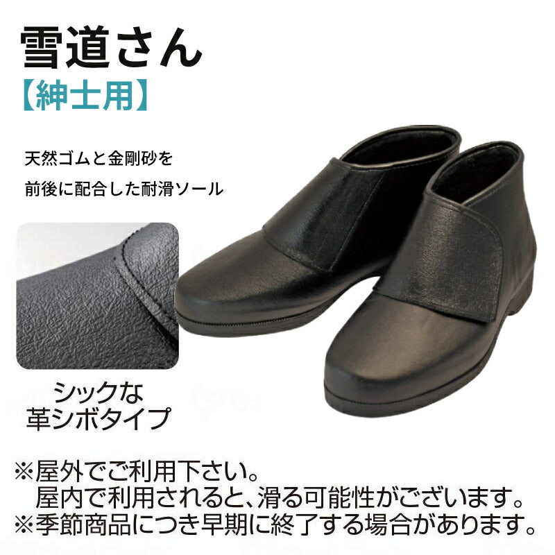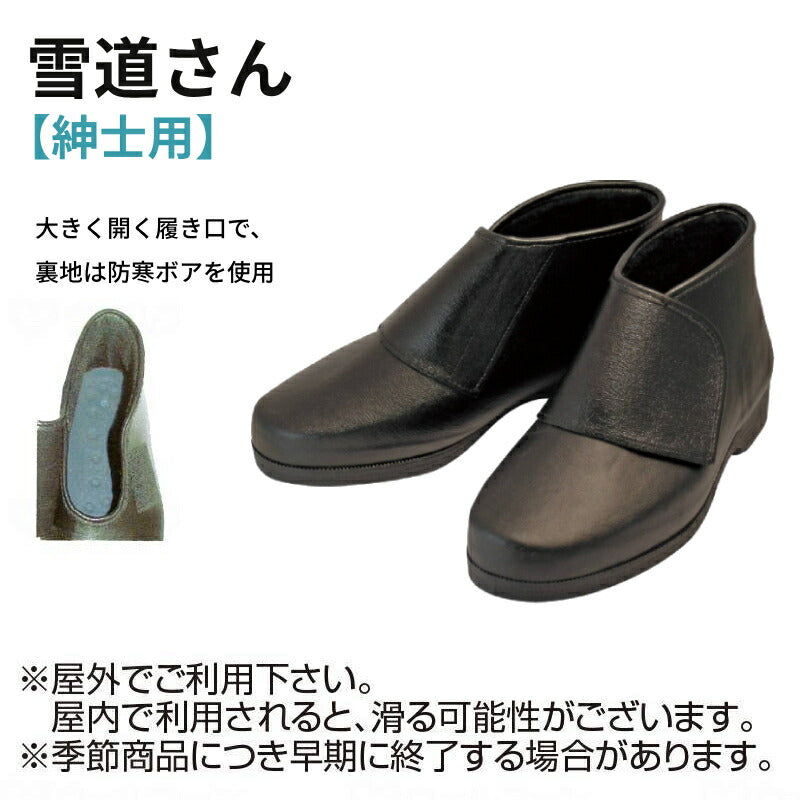 介護シューズ 冬 靴 大きく開く 防寒シューズ 裏地ボア 雪道さん 紳士用 スパイク付 3E ブラック 24.0cm〜27.0cm 革シボタイプ ウェルファン 男性用 メンズ 防寒ブーツ 介護用品