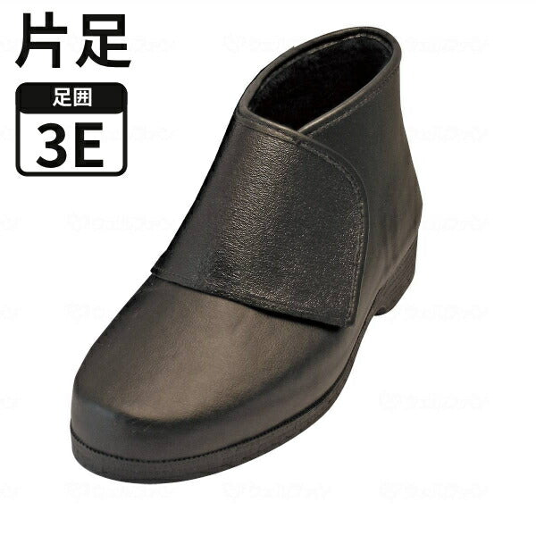 介護シューズ 冬 靴 片足販売 大きく開く 防寒シューズ 裏地ボア 雪道さん 紳士用 スパイク付 3E ブラック 24.0cm〜27.0cm 革シボタイプ ウェルファン 男性用 メンズ 防寒ブーツ 片足 介護用品