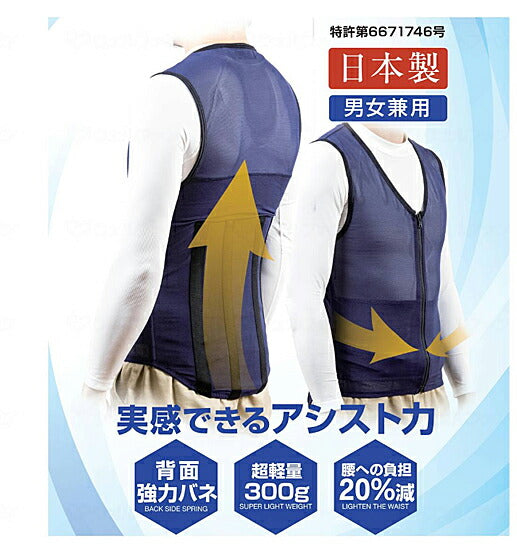 アシストベスト タスケル TA-001 ネイビー アトリエケー (男女兼用 サポーター 中腰 作業 腰痛 対策) 介護用品