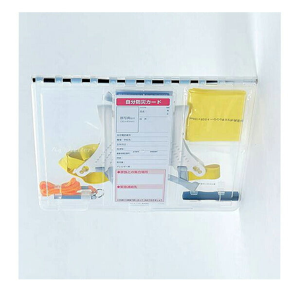●付属品/LEDライト(電池別売)、ホイッスル、多目的ポリエチレンシート(120×120)、頭部サポートベルト(黄色)、織ゴム、あご紐、ポリエステル