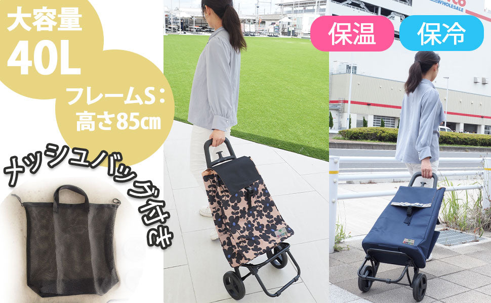 ショッピングカー 保冷 大容量 おしゃれ 折りたたみ 軽量 ショッピングカートS メッシュバッグ付き 女性 男性 買い物 持ち運び 高齢者