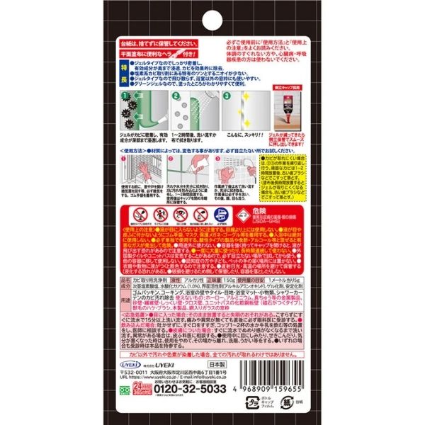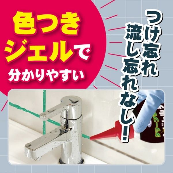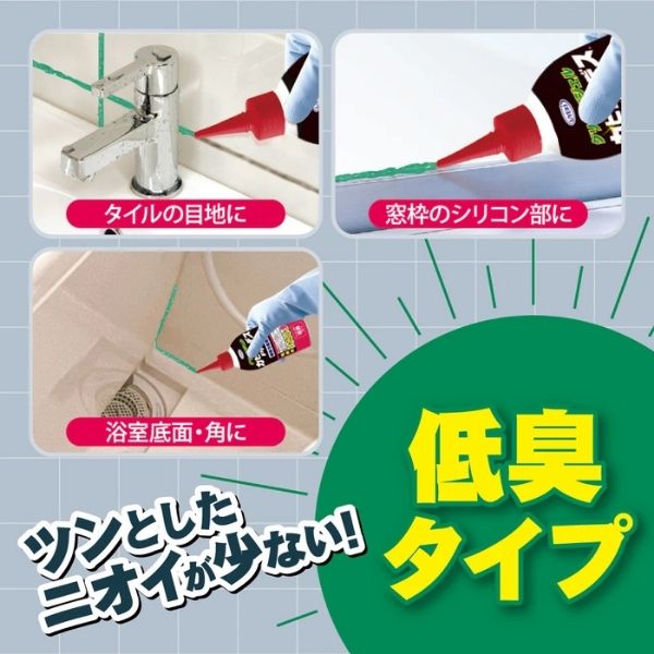 ・強力密着ジェルがカビの奥に浸透!安心して使えるマイルドな低刺激臭タイプのカビ取りジェルです。