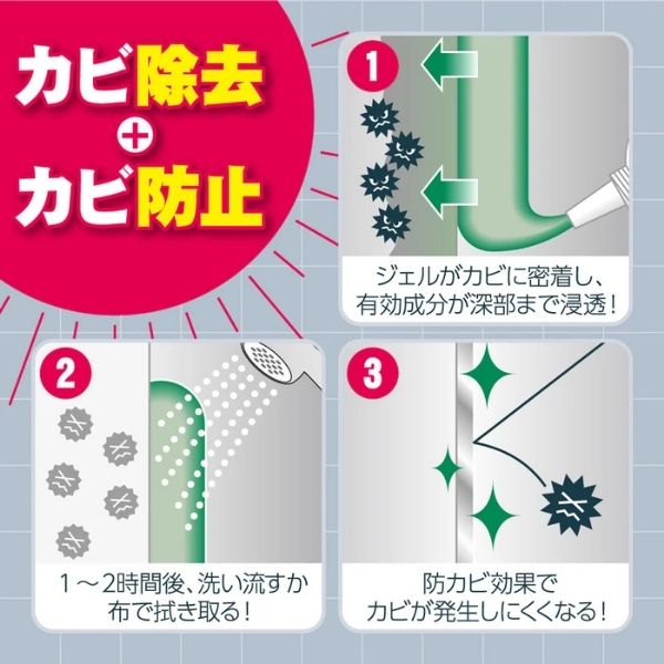 ・ガンコなカビ汚れを落とす!さらに!防カビ効果が約2カ月持続! ・ゼリー状だから、がんこなカビ汚れを包み込み スッキリ落とします。