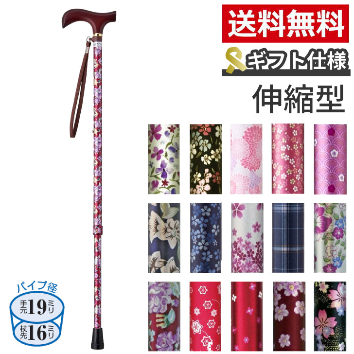 杖 ステッキ おしゃれ 杖 おしゃれ 伸縮 軽量【ギフトボックス仕様】夢ライフステッキ 柄杖伸縮型 スリムタイプ 9714 ウェルファン ※折り畳み不可 (プレゼント ギフト ステッキ 長さ調節 調節 スリム 細い コンパクト 持ち運び 花柄 女性 かわいい)