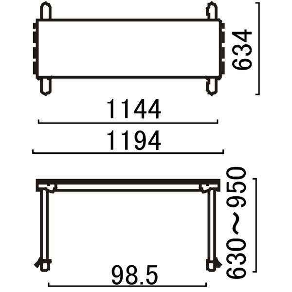 ●サイズ/幅119.4×奥行43.2×高さ63〜95cm、天板:幅114.4×奥行40cm