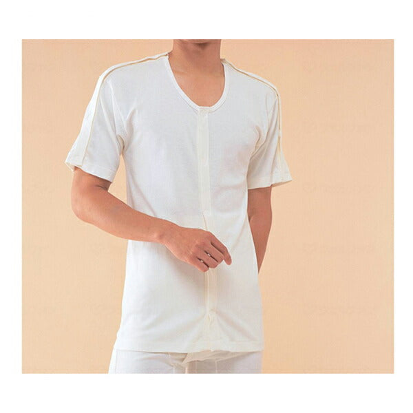 介護 肌着 ワンタッチ肌着 紳士用前開き両肩腕開き5分袖 No.8 丸型マジック式ボタン肌着 神戸生絲 男性用 メンズ 綿100% 介護用品