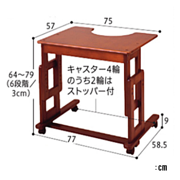 (代引き不可) サポートテーブルB 高さ64〜79cm (6段階) キンタロー (介護 ベッドサイドテーブル サイドテーブル キャスター テーブル 木製 車椅子) 介護用品