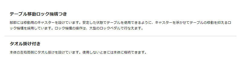 ・脚部には移動用のキャスターを設けています。安定した状態でテーブルを使用できるように、キャスターを浮かせてテーブルの移動を抑えるロック機構を採用しています。ロック機構の操作は、大型のロックペダルで行なえます。