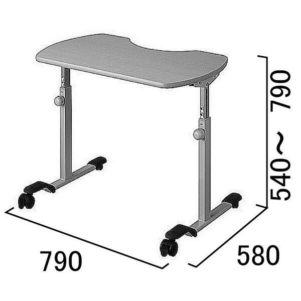 最低天板高を低く設定して、低床ベッドや座面の低い車いすとの組み合にも配慮。
