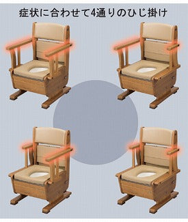 ●標準機能/ひじ掛け高さ調整(3段階/2.5cm)、便座高さ調整(4段階/3cm)、ソフト便座、背もたれ位置調整