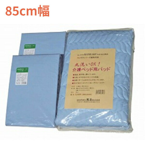 お得な寝具用セットB ブルー 85cm幅 萬楽 ゴム付き ボックス型シーツ 洗濯できる介護ベッド用パッド 介護用品