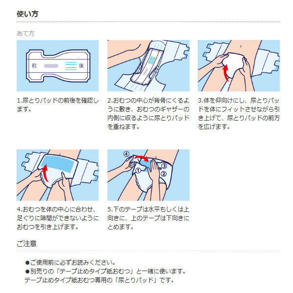 ※別売りの「テープ止めタイプ紙おむつ」と一緒に使います。テープ止めタイプ紙おむつ専用の「尿とりパッド」です。