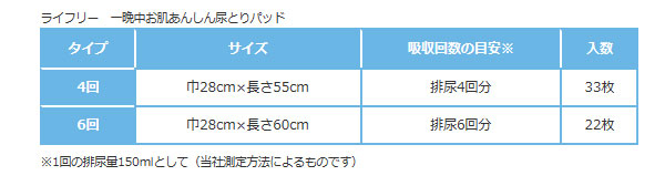 ・たっぷり約6回分をぐんぐん吸収するので、尿量の多い方でも、一晩中あんしんです。