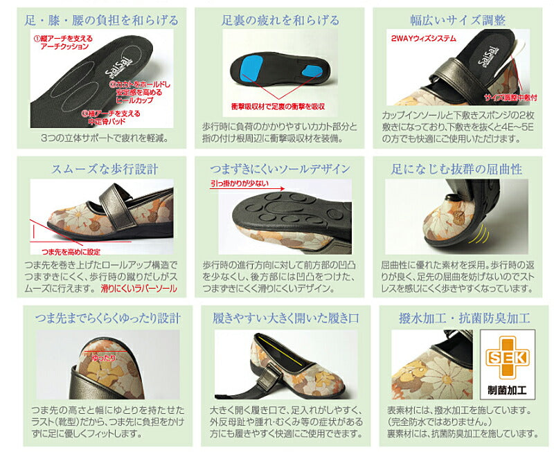 介護シューズ レディース おしゃれ SaiSai〜フラワープリント〜 W940 婦人用 マリアンヌ製靴 (靴 パンプス スリッポン) 介護用品 母の日 敬老の日 プレゼント