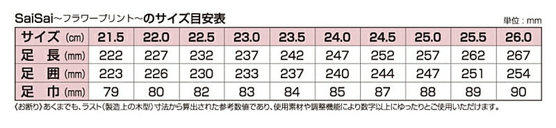 ●サイズ/21.5~26.0cm(0.5cmきざみ)