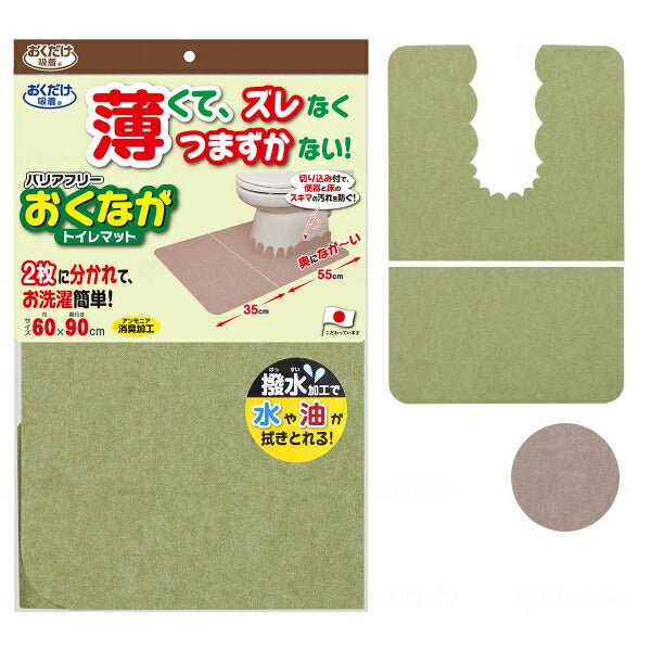 洗える おくだけ吸着 バリアフリー おくながトイレマット 無地 60×90cm サンコー 撥水加工 日本製 薄い ズレない つまずかない 介護用品