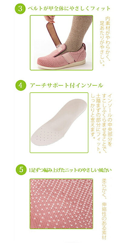 介護シューズ あゆみ レディース おしゃれ 室内 屋内 徳武産業 ダブルマジックIIIニット 1107 3E (介護靴 婦人靴 屋外 室内履き あゆみシューズ) 介護用品 母の日 敬老の日 プレゼント