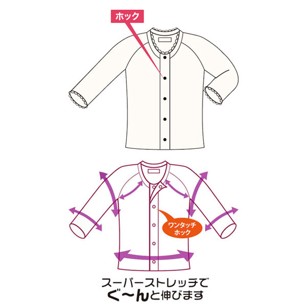 肩や腕部分も大きく伸びるので着せやすい(脱がせやすい)。