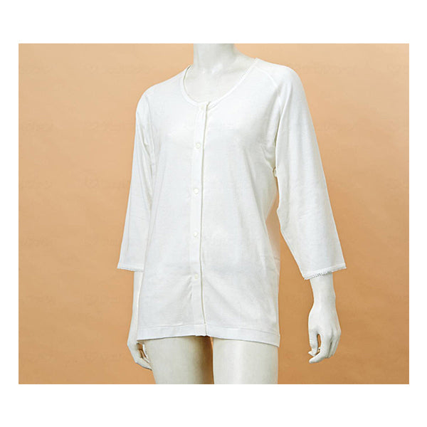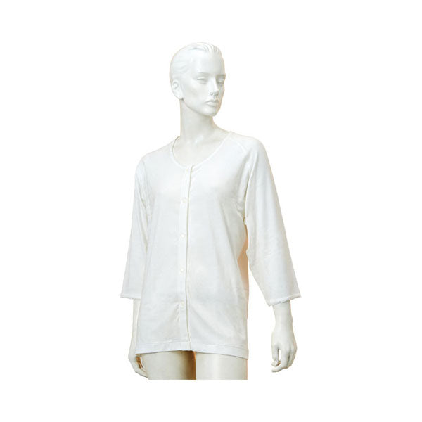 前開き肌着 女性 レディース 介護肌着 薄手 婦人 のびのびワンタッチ肌着7分袖 ホック付 春夏用 GZ6F オフホワイト 神戸生絲 介護 介護用品