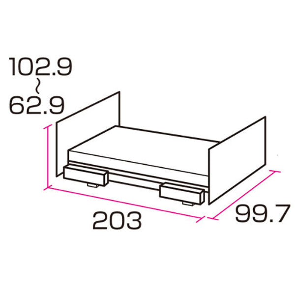 ●サイズ/全幅99.7×全長203×全高62.9〜102.9cm、床からボトム面まで:22〜62cm