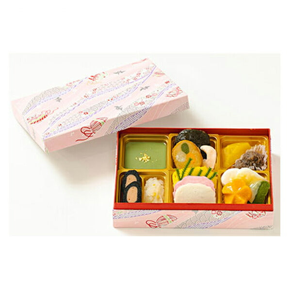●おしながき/抹茶ムース、椎茸しんじょうの煮物、やわらか小海老の煮物、鶏のやわらか三色巻、きんとん、黒豆のムース、やわらか昆布巻、なますゆず風味、そふと伊達巻、そふと紅かまぼこ、そふと白かまぼこ、白身魚とほうれん草のムース西京味噌あん、花形人参の煮物