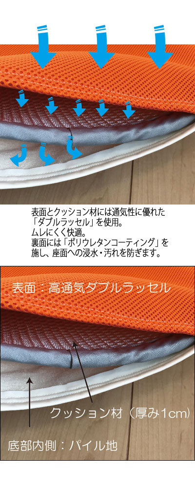 ・底面で防水。通気性に優れた立体構造のダブルラッセル生地を使用。