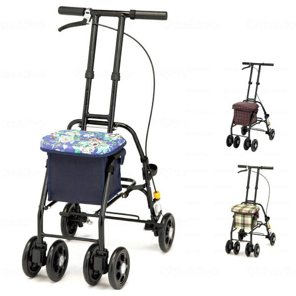 ●標準機能/折りたたみ、3WAYキャスター(360°、左右45°、固定)、手元ブレーキ、駐車ブレーキ、座面、杖・傘立て