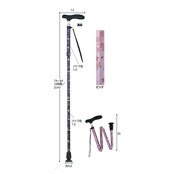 杖 ステッキ 介援隊 折りたたみ和柄杖 抗菌グリップ CMS-13 介護 歩行補助 介護用品
