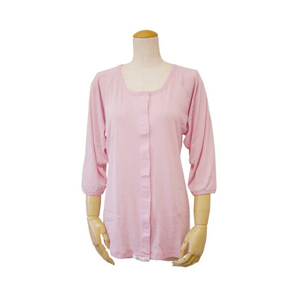 婦人七分袖前開きシャツ(縫い目が外側・ワンタッチテープ式)43281 杢ピンク ウエル 前開き肌着 女性 入院 介護肌着 介護用肌着 介護用下着 高齢者