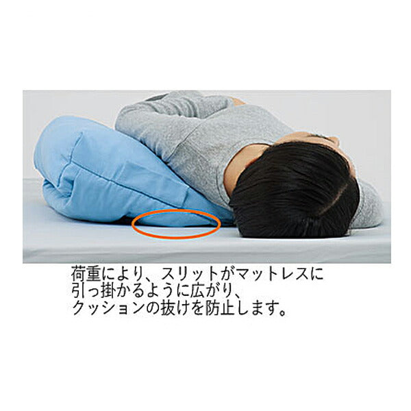 ・スリットがマットレスに引っ掛かるように広がることで、クッションの抜けを防止し、時間が経っても姿勢が崩れにくい。