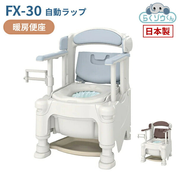 安寿 ポータブルトイレ FX-30 らくゾウくん 自動ラップ 暖房便座 532-972 532-973 アロン化成 (介護 樹脂製 ポータブルトイレ 肘付き椅子) 介護用品