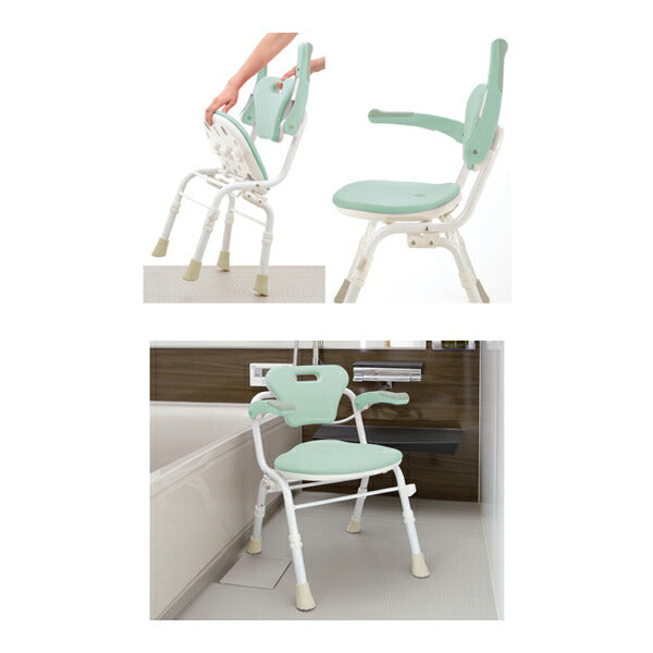 シャワーチェア 介護用風呂椅子 やわらかシャワーチェア クレオ折りたたみ 防カビプラス 肘掛付460 幅46cm 140066 ライトグリーン リッチェル 介護 介護用品
