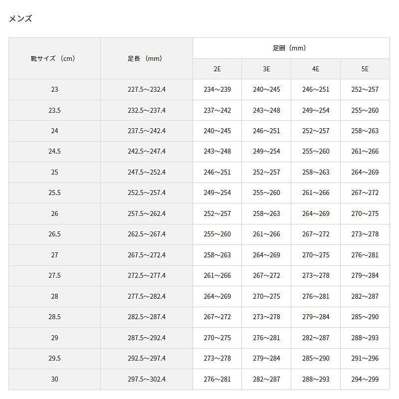 22.0〜28.0cm(0.5cmきざみ、27.5cmはなし)