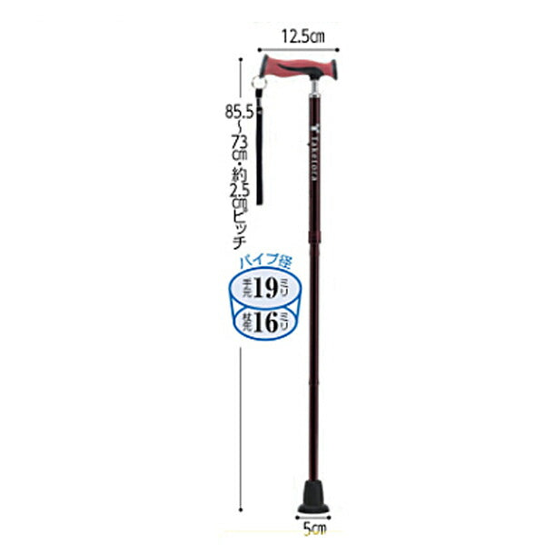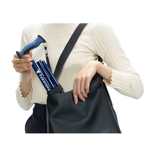 ・軽量で持ち運びに便利な細首タイプの折りたたみ杖。