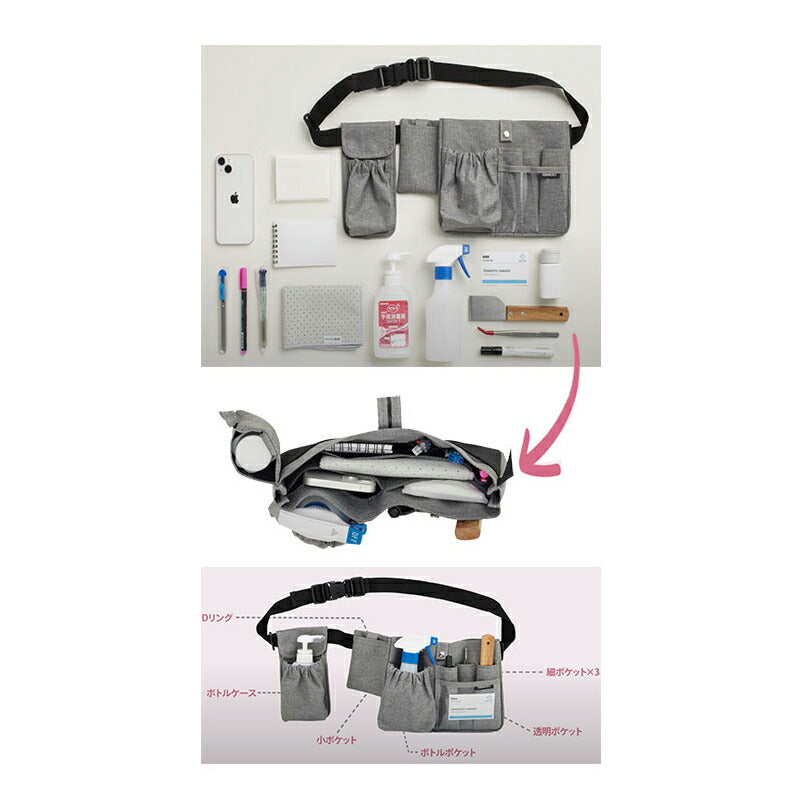 ・仕事道具がひとつにまとまる多収納ポーチ。