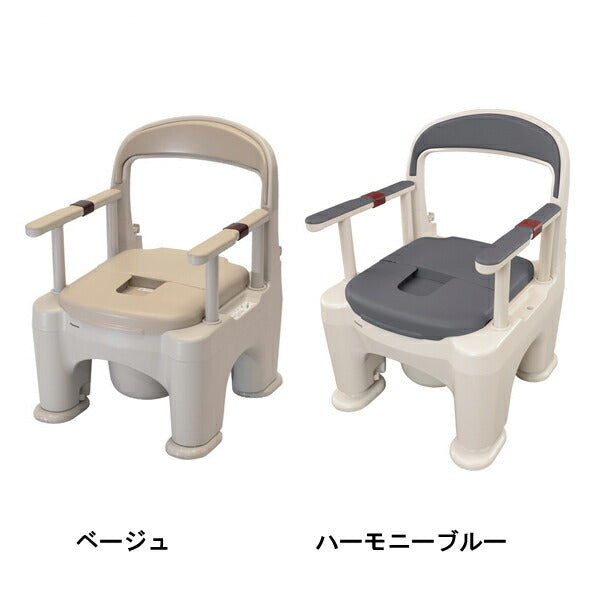パナソニック 樹脂製ポータブルトイレ 座楽ラフィーネ 長穴プラスチック便座タイプ (前傾後傾脚なし) PN-L30205 (ポータブルトイレ 肘付き椅子キャスター付き) 介護用品